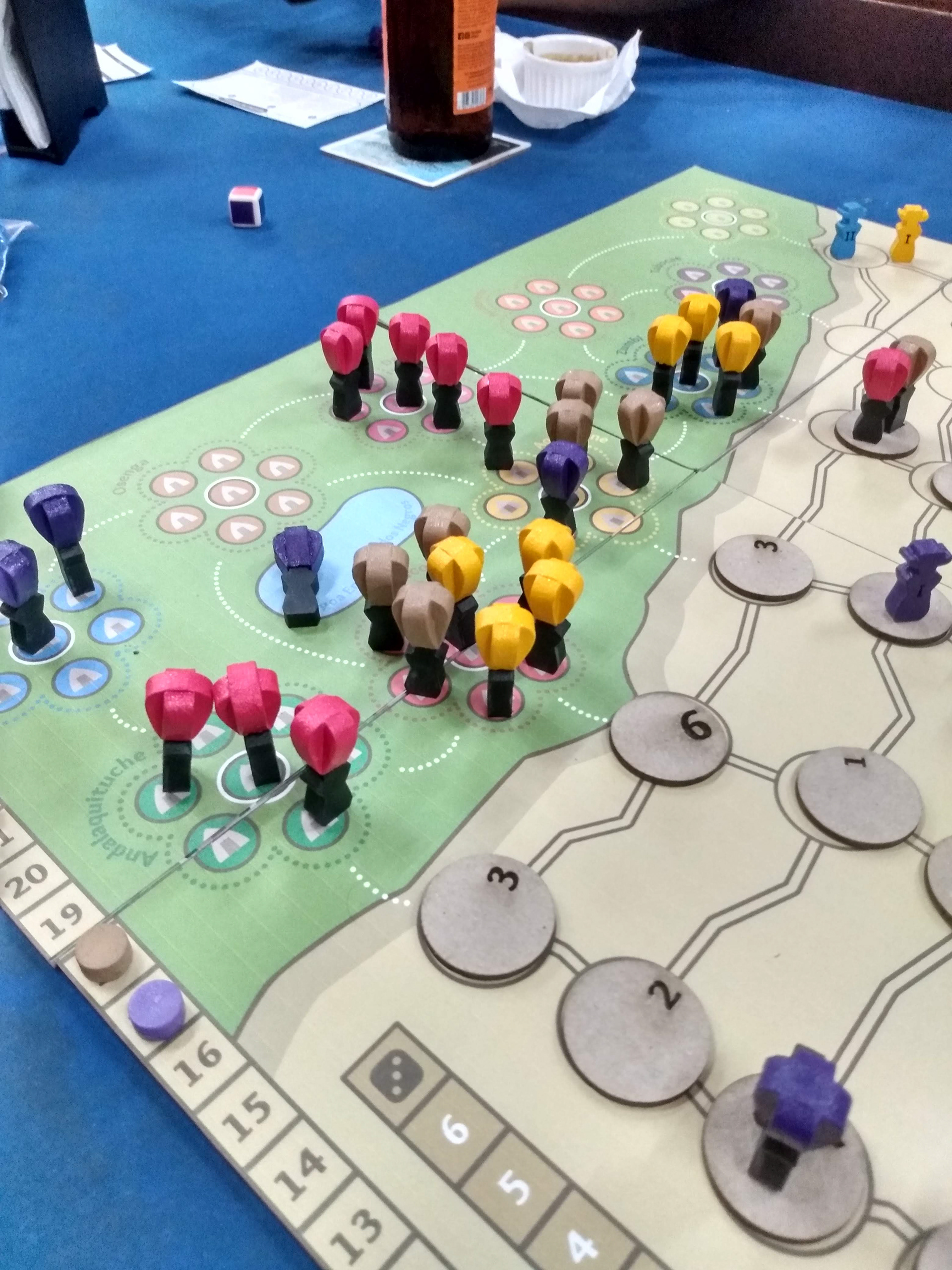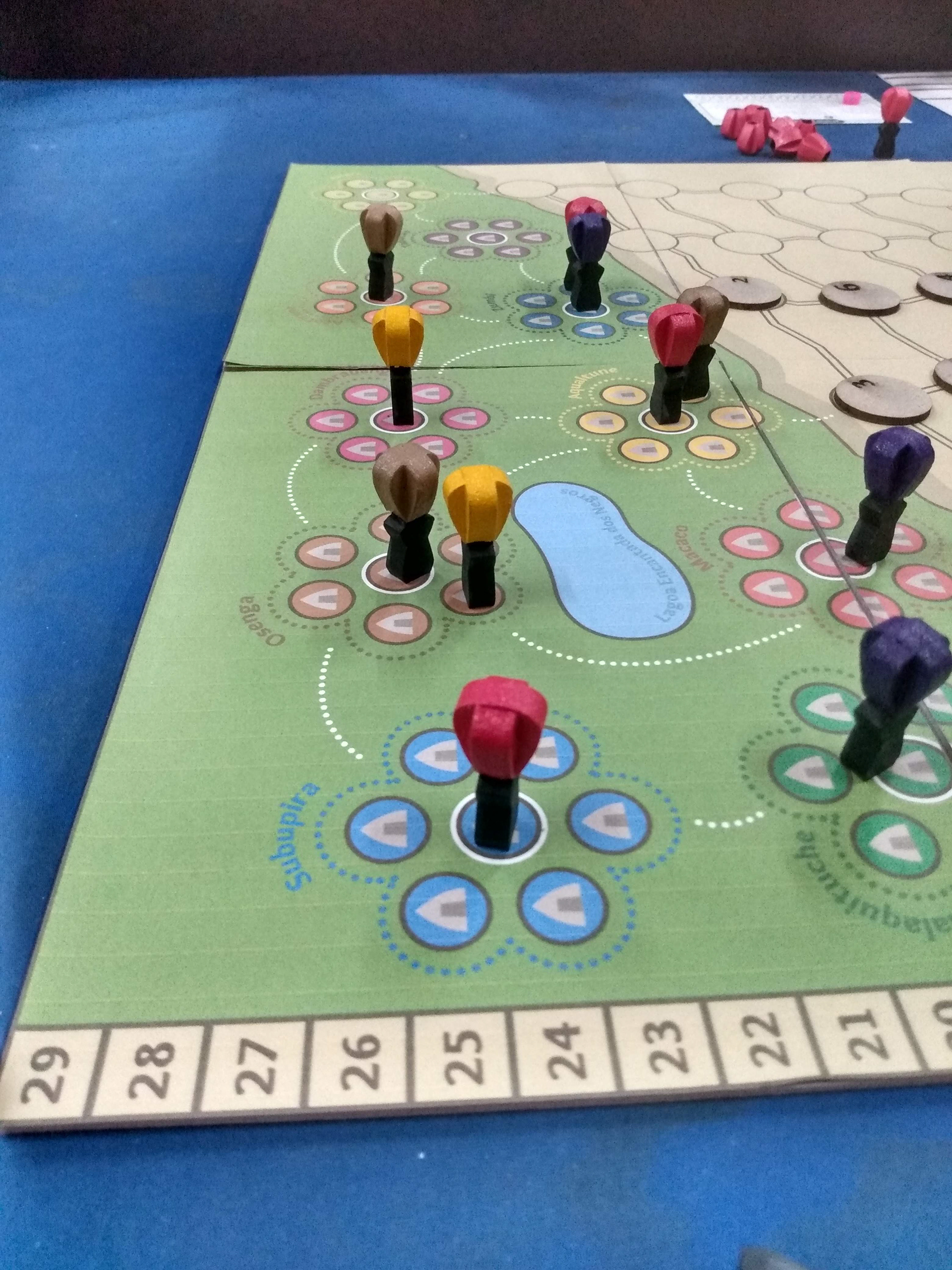 Principais mecânicas: controle de área, pegar e entregar, rolagem de dados e rolar e mover para a movimentação dos capatazes.